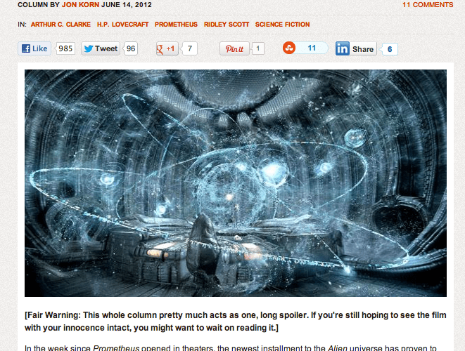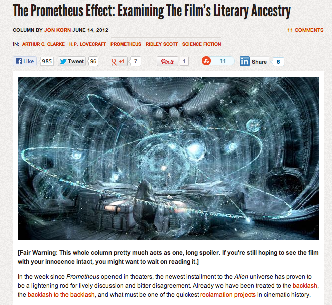 This is really rad. indieWire’s Matt Singer selected my LitReactor piece “The Prometheus Effect” as one of his top 10 favorite things written about the film so far. Thanks Matt!