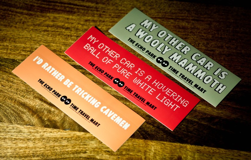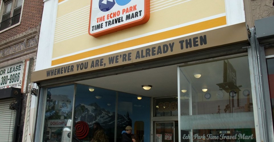 The Echo Park Time Travel Mart is the world’s leader in convenience retailing for time travelers, with branches in every major time period from the Big Bang to the Omega Point. We sell everything you need for a road trip through the fourth dimension: robot emotions, chain mail, and snacks, snacks, snacks! You can visit the EPTTM online, or at its brick and mortar location at 1714 Sunset Blvd.