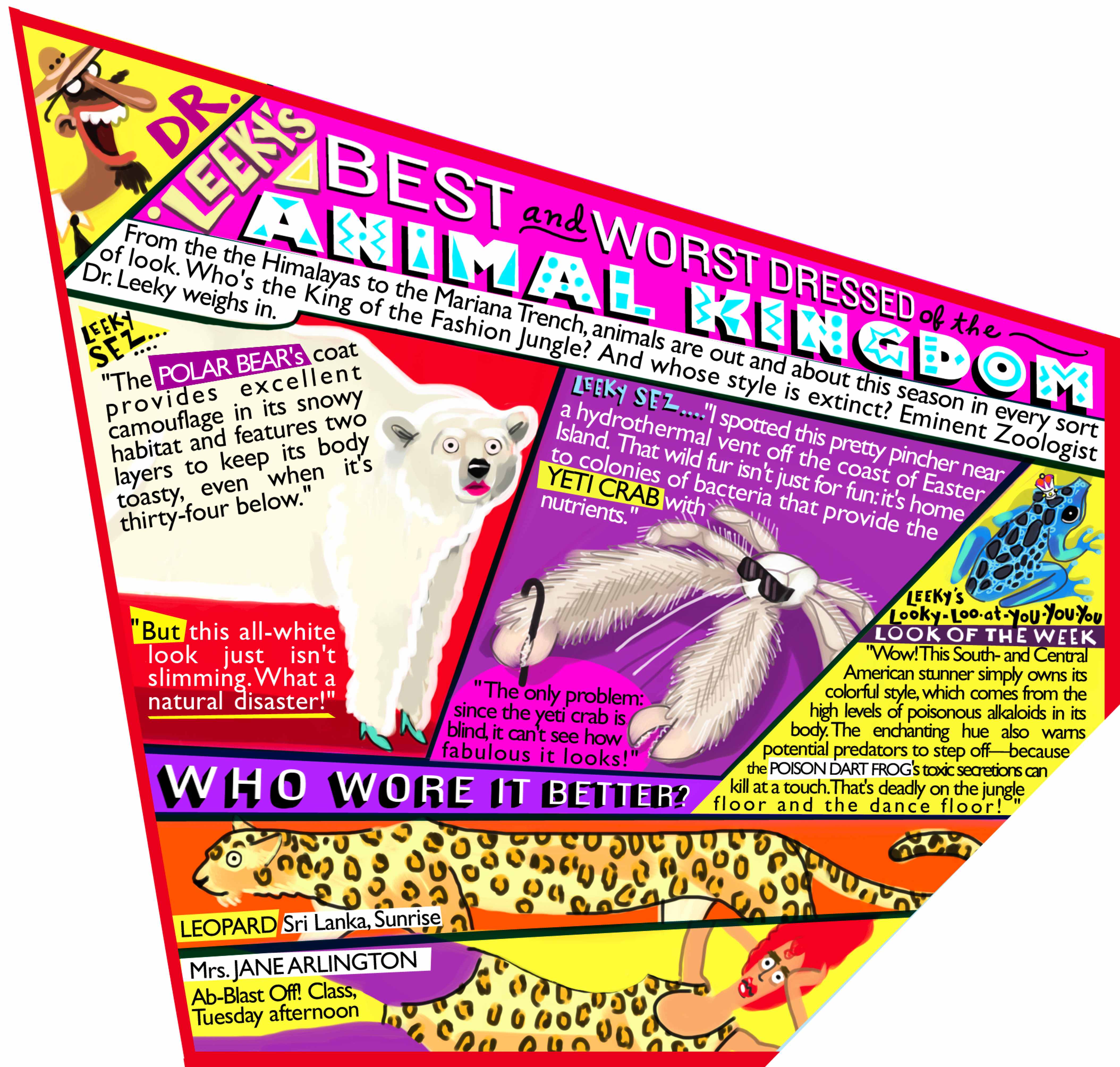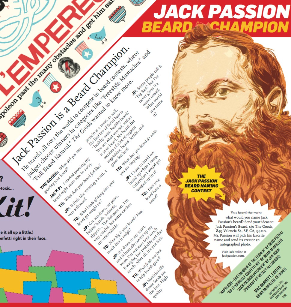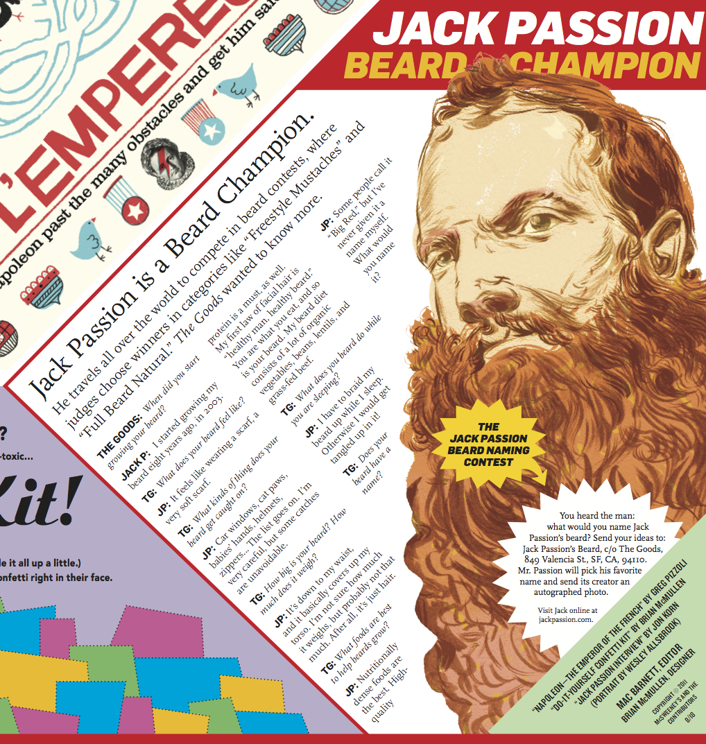 The Goods is a gallimaufry of games, puzzles, comics, and diversions, presented by McSweeney’s. It appeared in newspapers across the U.S. and Canada. I created and wrote one-off pieces as well as several recurring features, such as “Dr. Leeky’s Best and Worst Dressed Of The Animal Kingdom” and “Cook With Your Face.” Other contributors include Jon Scieszka, Collin Melloy, Carson Ellis, Sam Potts, and Jon Klassen.